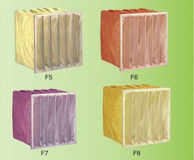 按照國內(nèi)凈化設(shè)備行業(yè)分類有:袋式中效過濾器、板式中效過濾器、有隔板無隔板中效過濾器、組合式中效過濾器、箱體式中效過濾器;按效率劃分有:F5級中效袋式過濾器、F6級中效袋式過濾器、F7級中效袋式過濾器、F8級中效袋式過濾器、F9級中效袋式過濾器。